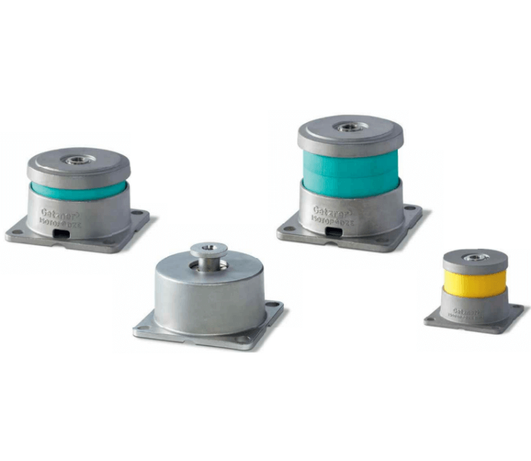 • Isotop® DZE Mini: Compact elements with high-performance dampers suitable for lighter equipment, handling load ranges between 8 kg and 230 kg with a natural frequency from $9.6 \text{ Hz}$.
