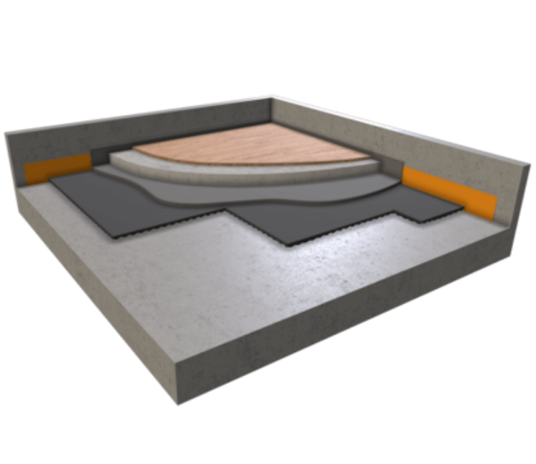 Refurbishment and New Build: Easily integrated into any floor construction utilizing screed and an acoustic mat base.